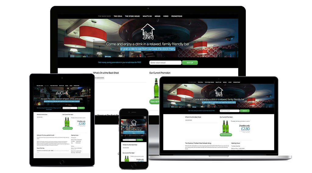 I designed and build a responsive (mobile friendly) website that was content managed. The site had full html menus (not PDF's) to make them more mobile friendly. The site also had an updateable events section, daily Specials and promotions. In addition we set up an email marketing campaign that included automated invites for birthday drinks, QR Code promos and a full social media package which involved producing a promotional video